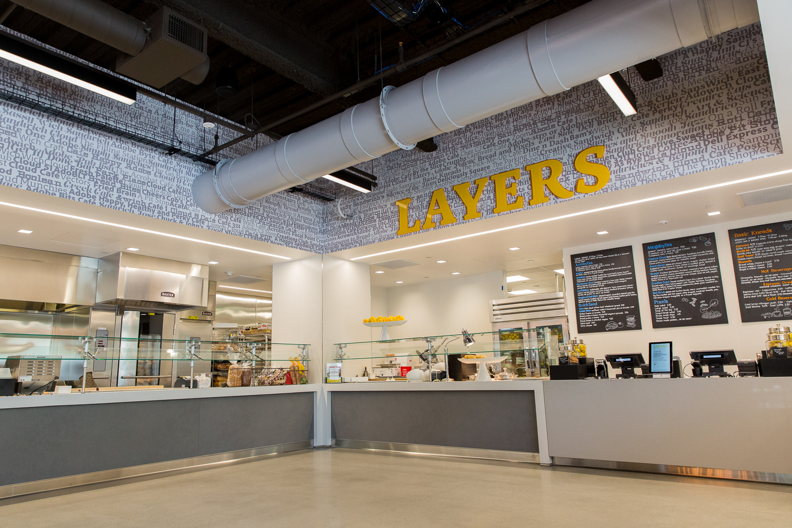The name of the cafe was selected from submissions to the site-wide naming contest. LAYERS is a nod to the "layers" of ingredients in the sandwiches and coffee drinks on the menu, as well as to the notorious "layers" feature in Adobe's creative software like Photoshop, Primetime and the Brush app.